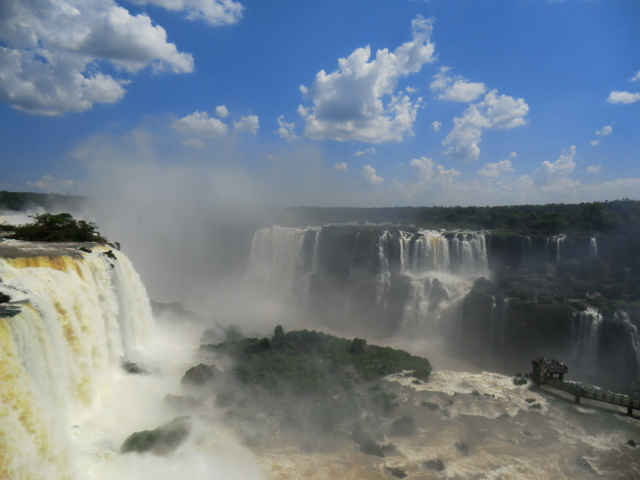 Le plus : les deux chemins possibles pour voir les chutes soit d'en haut soit d'en bas. Le moins: Le meilleur d'iguazu , c'es à dire la gorge du diable est fermée en ce moment du coté argentin (le pont à été brisé par les eaux, rassurant oui).